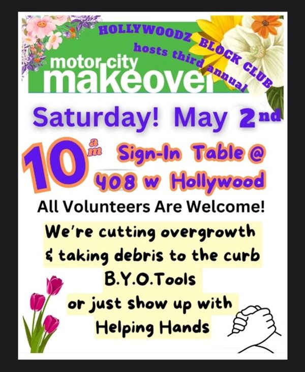 Hollywoodz Blockclub is ready to Spring into action for the Motorcity Makeover! Volunteers are welcome.