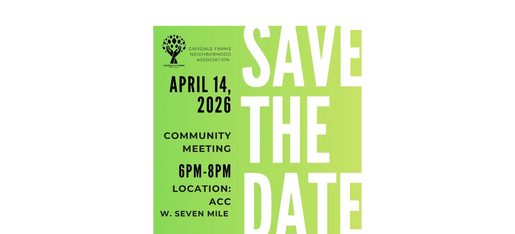 Our association is bounded by 7 Mile Road to the north, 6 Mile Road (W McNichols Road) to the south, John R Street to the east, and Woodward Avenue to the west.